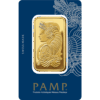 The most popular gold bullion bar, the PAMP Fortuna is one of the gold bars made by PAMP Suisse and comes in 100 grams. This gold bar contains 100g (3.2154 ozt) of .9999 pure gold. This iconic gold bar was first minted in Ticino, Switzerland in 1977 and quickly became a leading brand in the precious metals market. This gold bar shows one of the most iconic images in gold bar history, the Roman goddess Fortuna.